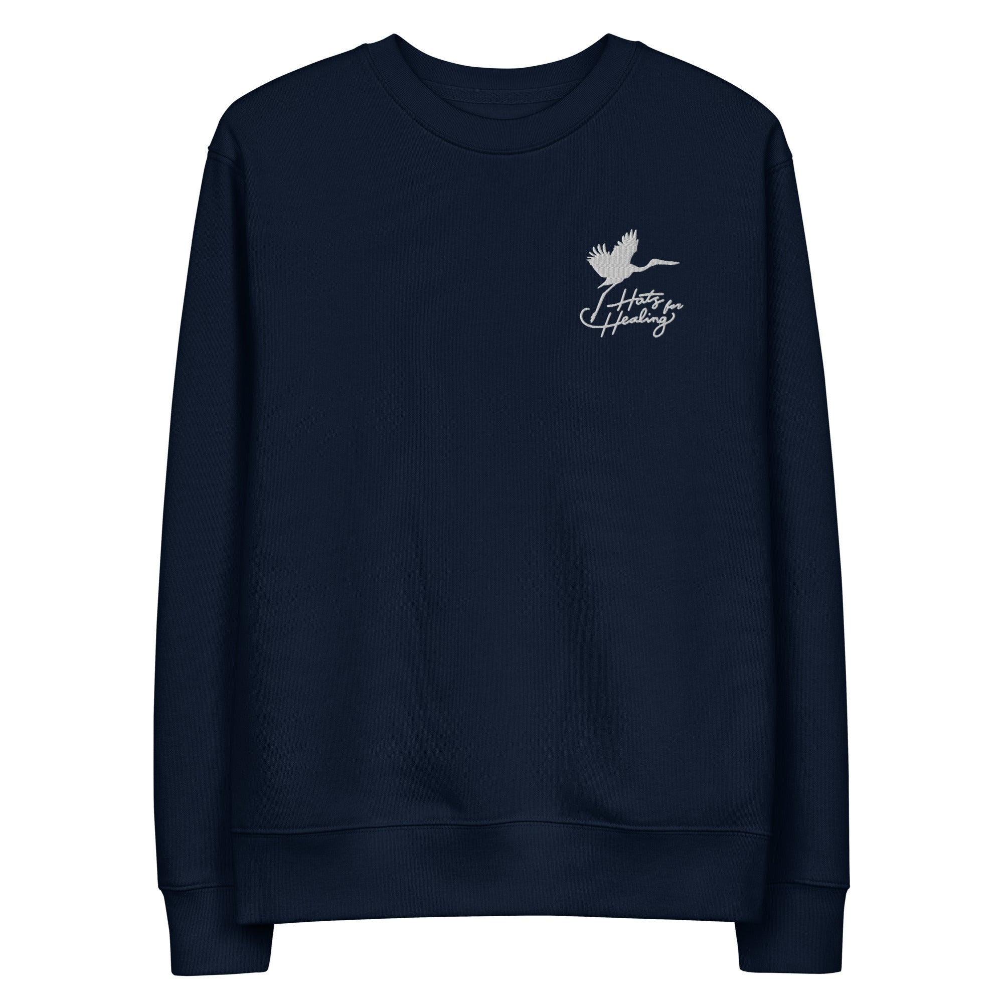 Elevate your wardrobe with the Hats for Healing Logo Eco Sweatshirt a cozy, responsibly made sweatshirt designed for comfort, style, and conscious living. Crafted from a soft, eco-friendly blend of premium materials, this sweatshirt pairs timeless design with sustainable performance.